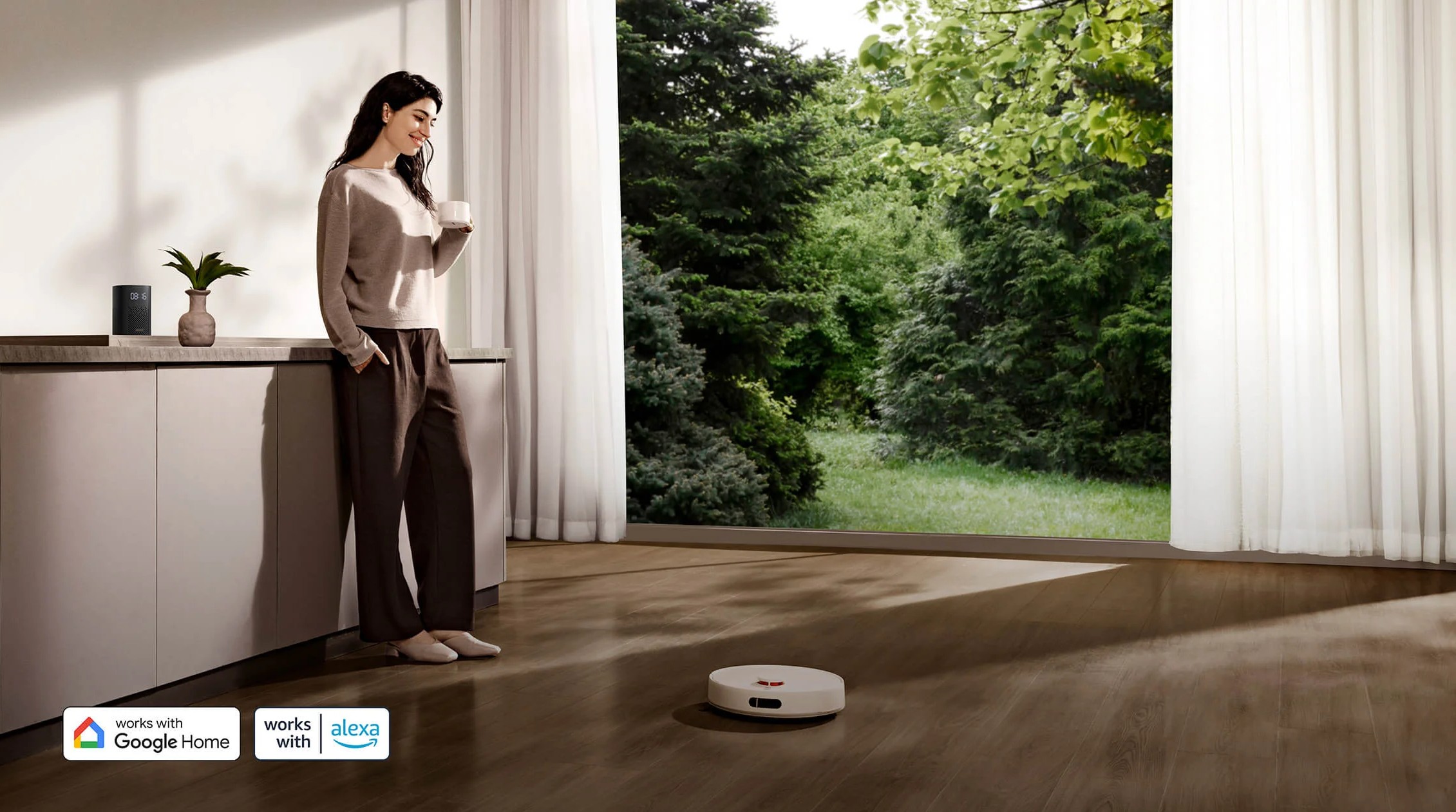 Роботом можно управлять из приложения Xiaomi Home: запускать уборку, задавать расписание, настраивать мощность и подачу воды. Поддерживается голосовое управление через Google Assistant и Amazon Alexa.