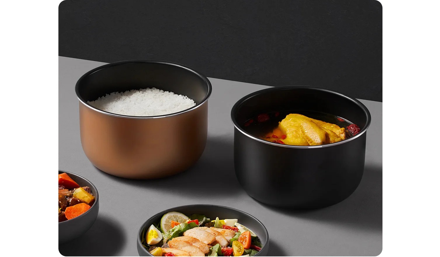 Устройство для готовки оборудовано специальными кастрюлями большого объема 4,8 л, которые идеально подходят для всей семьи или компании гостей. Несмотря на солидный объем, правильно настроенный процесс подогрева и готовки компонентов позволяет добиться идеальной проготовленности каждого кусочка.