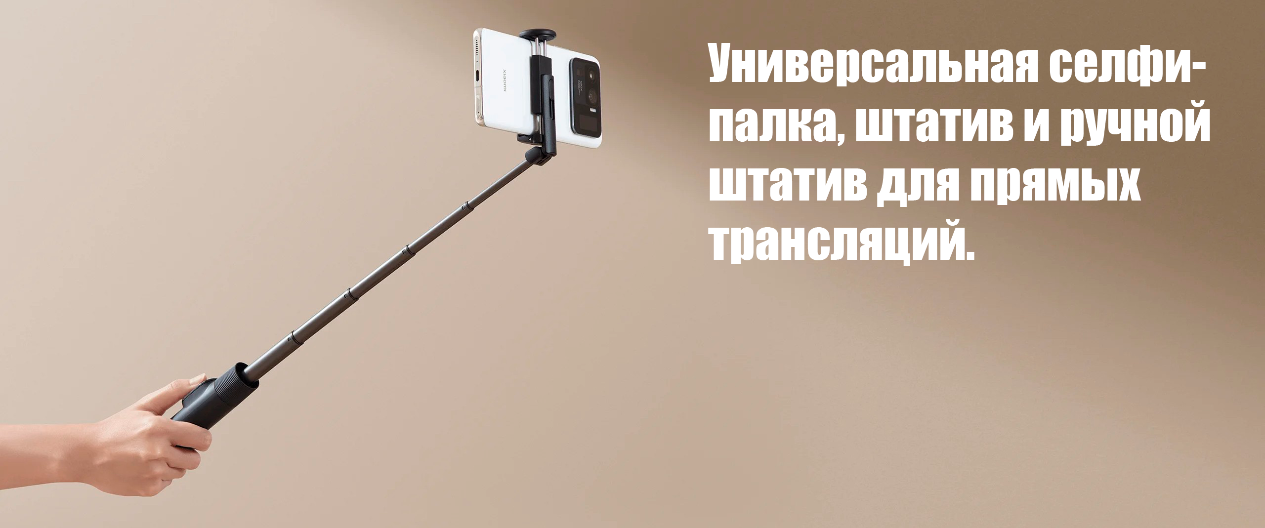 Трипод можно установить на поверхность для стабильной съемки — это удобно для видео, стримов и групповых фото. Штанга из алюминиевого сплава обеспечивает прочность и легкость, а также позволяет увеличивать длину для более удобных ракурсов.