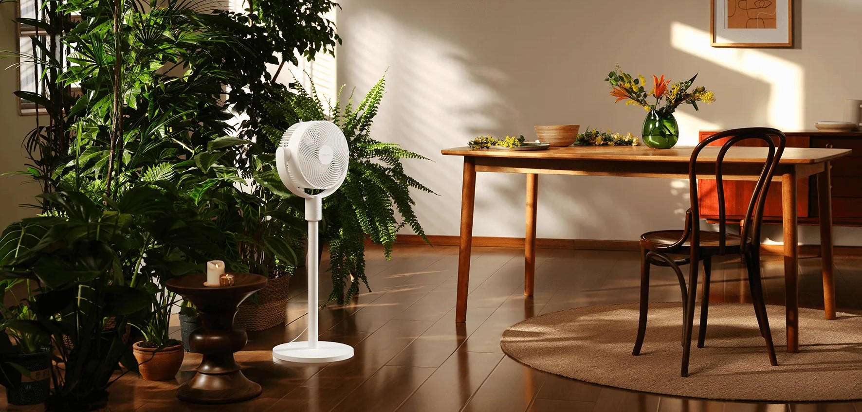Xiaomi Smart Standing Air Circulation Fan можно использовать как напольный и настольный вентилятор. Благодаря продуманной конструкции он легко адаптируется под разные сценарии — от рабочего стола до полноценного охлаждения комнаты.